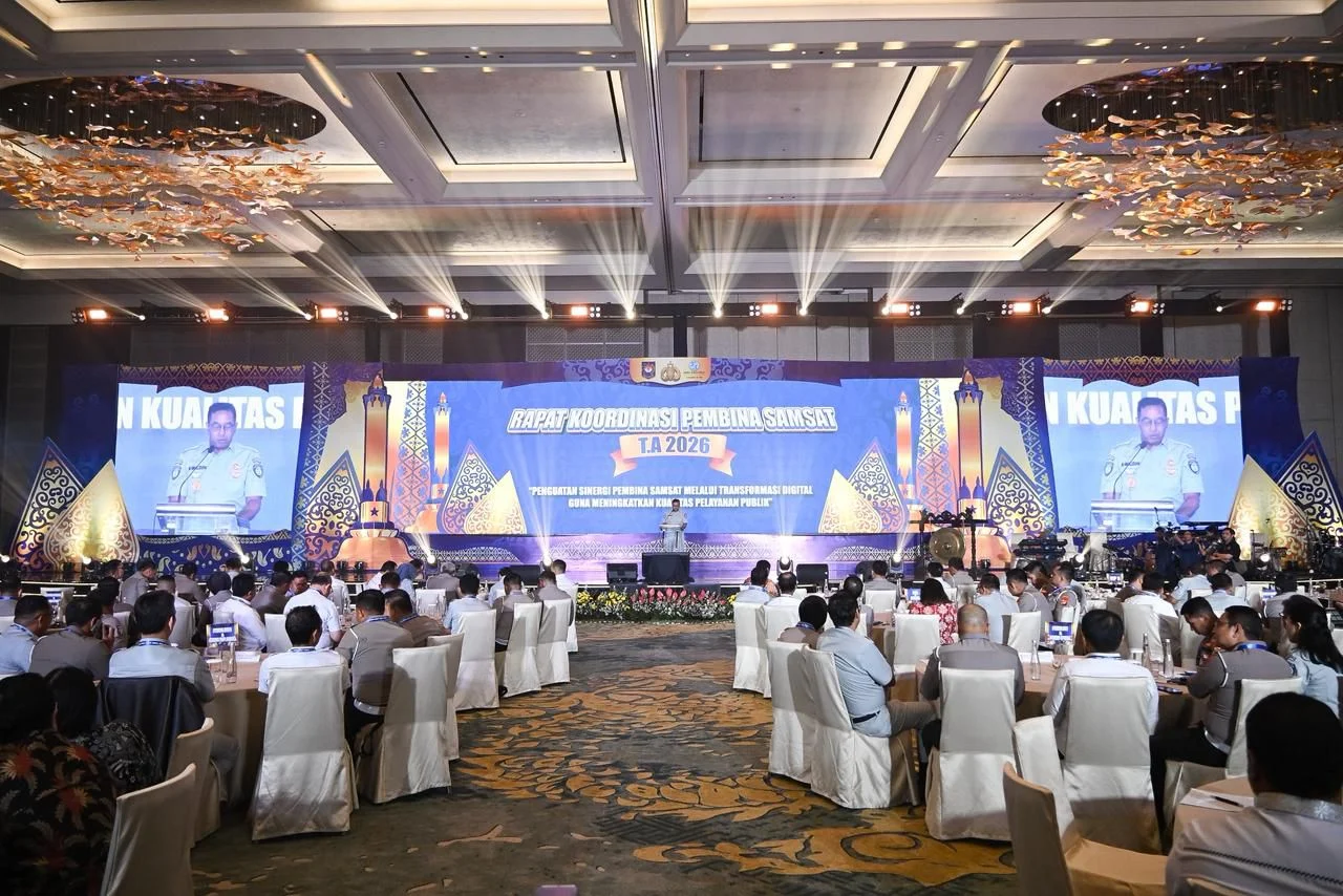 Agus Fatoni, M.Si. Rakor juga diikuti oleh seluruh Tim Pembina Samsat (TPS) Provinsi yang terdiri dari Dirlantas Polda, Kepala Bapenda, serta Kepala Kantor Wilayah Jasa Raharja di seluruh Indonesia. Saat membuka acara, Kakorlantas Polri Irjen Pol. Agus Suryonugroho menekankan pentingnya menjaga sinergi tiga pilar Samsat serta memastikan pelayanan kepadavmasyarakat berjalan optimal. Ia menyampaikan, “Transformasi pelayanan publik harus terus didorong. Jangan sampai masyarakat yang mau bayar pajak mengalami kesulitan. Sinergi tiga pilar harus dijaga agar tidak terjadi konflik.”