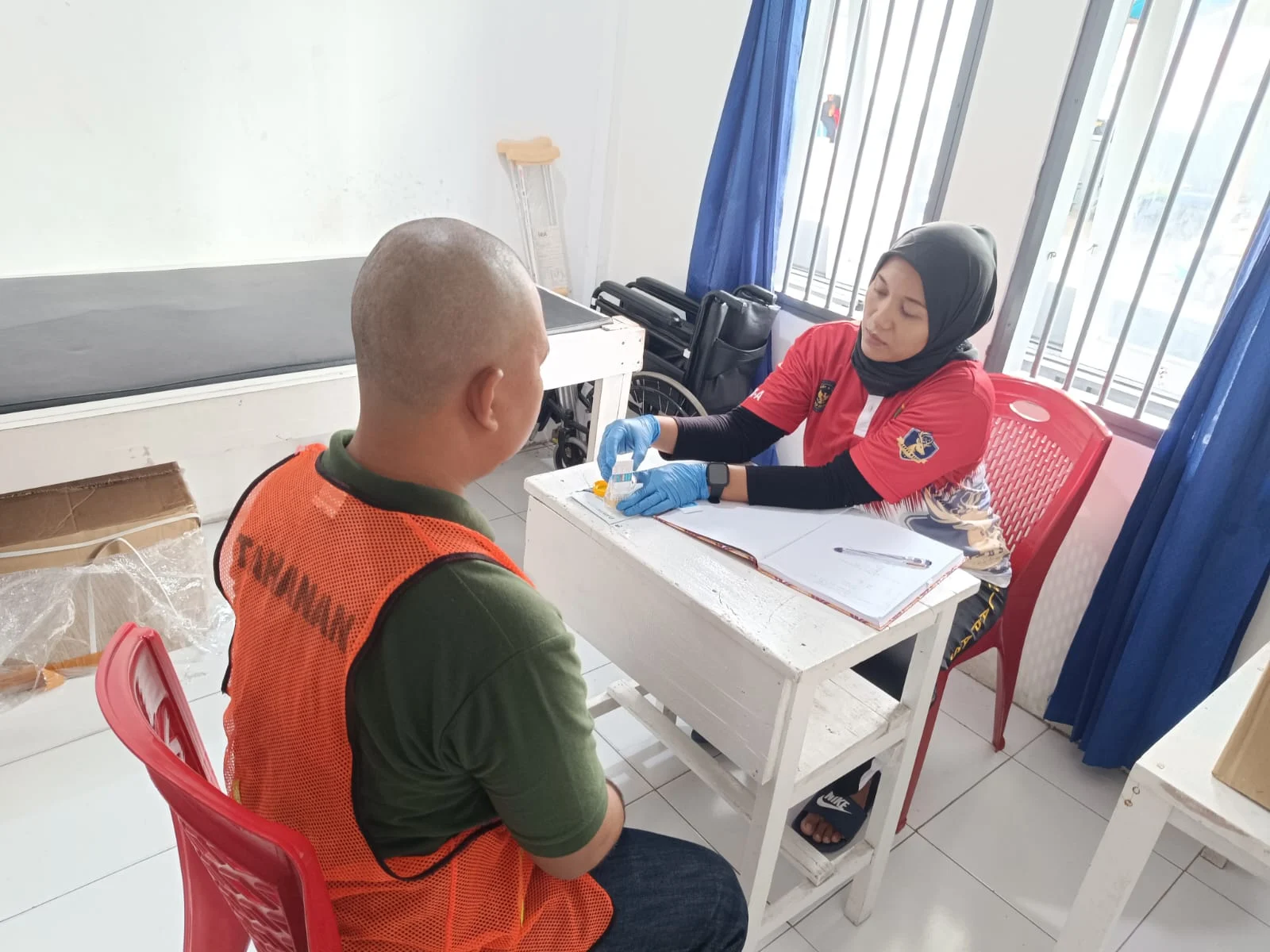 Tes urine dilakukan terhadap empat orang tahanan yang baru masuk. Selain itu, petugas kesehatan turut melakukan skrining awal untuk memastikan kondisi kesehatan para tahanan sejak awal masa pembinaan.